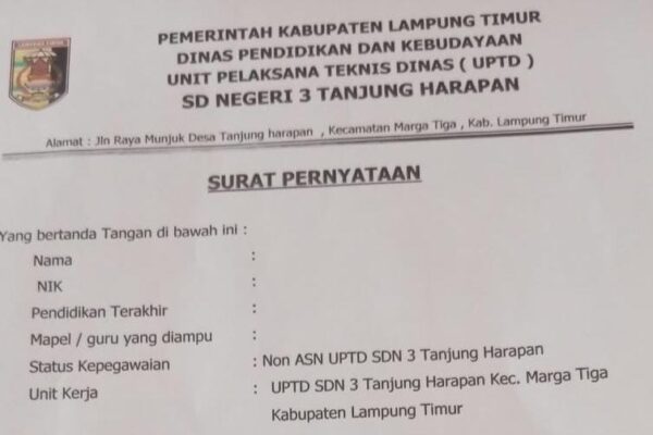 Lampung Timur Guru Diminta Teken Surat Bermaterai, Kepala SDN 3 Tanjung Harapan Akui Inisiatif Pribadi Posted on4 Februari 2026 GamaNews.id —Lampung Timur,, Dunia pendidikan di Kabupaten Lampung Timur kembali …